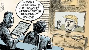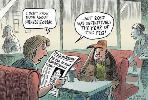 Je vous souhaite à toutes et à tous autant d’amusement à découvrir les dessins du remarquable Patrick Chapatte du New York Times que j’ai inclus dans ce blog, une vidéo absolument hilarante montrant les dérives ridicules mais dramatiques de Donald Trump et le superbe édito de Riss de Charlie Hebdo dont je resterai redevable ad vitam aeternam reconnaissant pour leur courage et le combat qu’il mène pour la liberté des idées. Toutefois si certains d’entre vous étaient choqués par le vocabulaire employé par Riss, je vous prie à l’avance de m’en excuser.