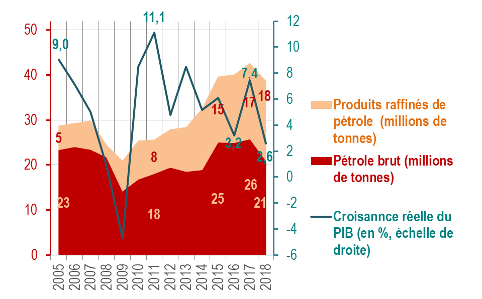Il faut y voir aussi un effet du tassement de la croissance du PIB de la Turquie (2,8 % en moyenne sur l’année 2018 contre 7,6 % en 2017), dont l’économie est entrée en récession depuis le dernier trimestre 2018. Un tassement qui s’est traduit par une baisse des importations turques de produits pétroliers : 42,7 millions en 2017 contre 38,7 millions de tonnes en 2018 (voir graphique 1).