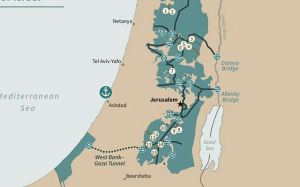 À regarder attentivement une carte, l’on voit tout de suite que les enclaves palestiniennes même reliées artificiellement par des autoroutes ou des tunnels n’ont pas de frontières autres qu’israéliennes. Même les trois poches–désertiques situées face à Gaza–n’ont de frontières ni avec la mer ni avec l’Égypte. Il en va de même en Cisjordanie où la frontière orientale avec la Jordanie est israélienne.