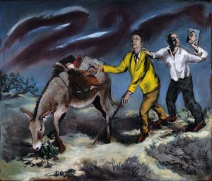 Ce dernier tableau est né d’une analogie hébraïque qui fascine le peintre, qu’il énonce ainsi : « [la] racine consonantique aton qui désigne l’ânesse est proche de teina, la figue et les deux mots sont associés dans le Talmud » (Cf. ibid, p.21). Depuis cette première peinture, l’ânesse (ou l’âne) passe d’une toile à l’autre pour dire autant que pour dénoncer une certaine vision de l’art et des valeurs qu’il sert.